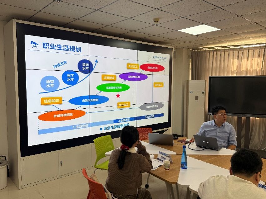 选手展示完后,宋立斌面向参赛选手作了专业指导,介绍了赛事的评审标准,并对职业规划的流程进行了指导,围绕学生特点和赛事要求进行了针对性的讲解,帮助学生提升职业规划能力,并预祝大家取得好成绩。