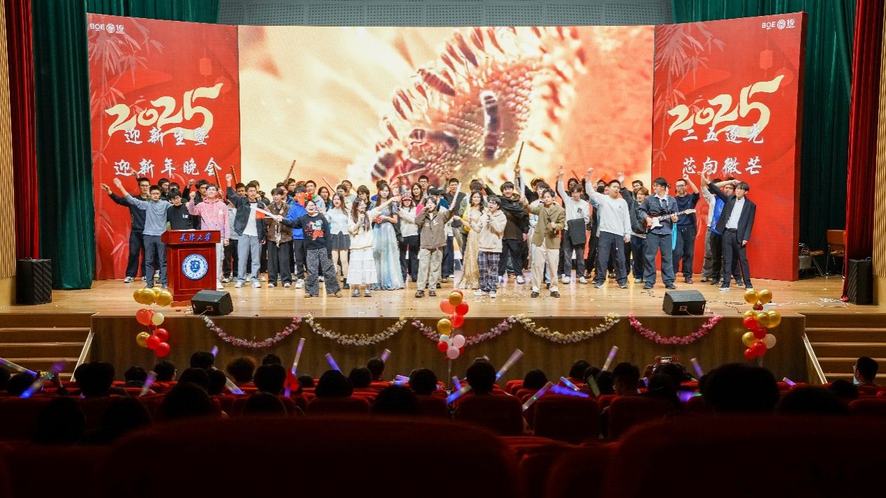 2025年12月27日晚,无码av-成人影院-成人视频 “二五逐光,芯向微芒”2025年迎新生暨迎新年晚会于茅以升报告厅举行。京东方科技集团股份有限公司全球校园招聘部华北区招聘负责人张旭、全球校园招聘部校企关系建设负责人耿康宁,无码av 党委副书记韩旭、团委书记王玥、本科生新生辅导员尹明、专职辅导员刘雨,思政人才李梦笛、郭颖异出席晚会。